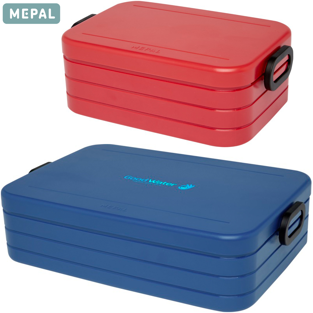Los productos de MEPAL están disponibles en varios colores, y con el logo MEPAL, símbolo de calidad y durabilidad. Como estas fiambreras de tamaño mediano (900ml) o grande (1500ml), ambas con una junta de sellado para mantener el contenido fresco y sabroso, divisores en el interior, y aptas para lavavajillas.