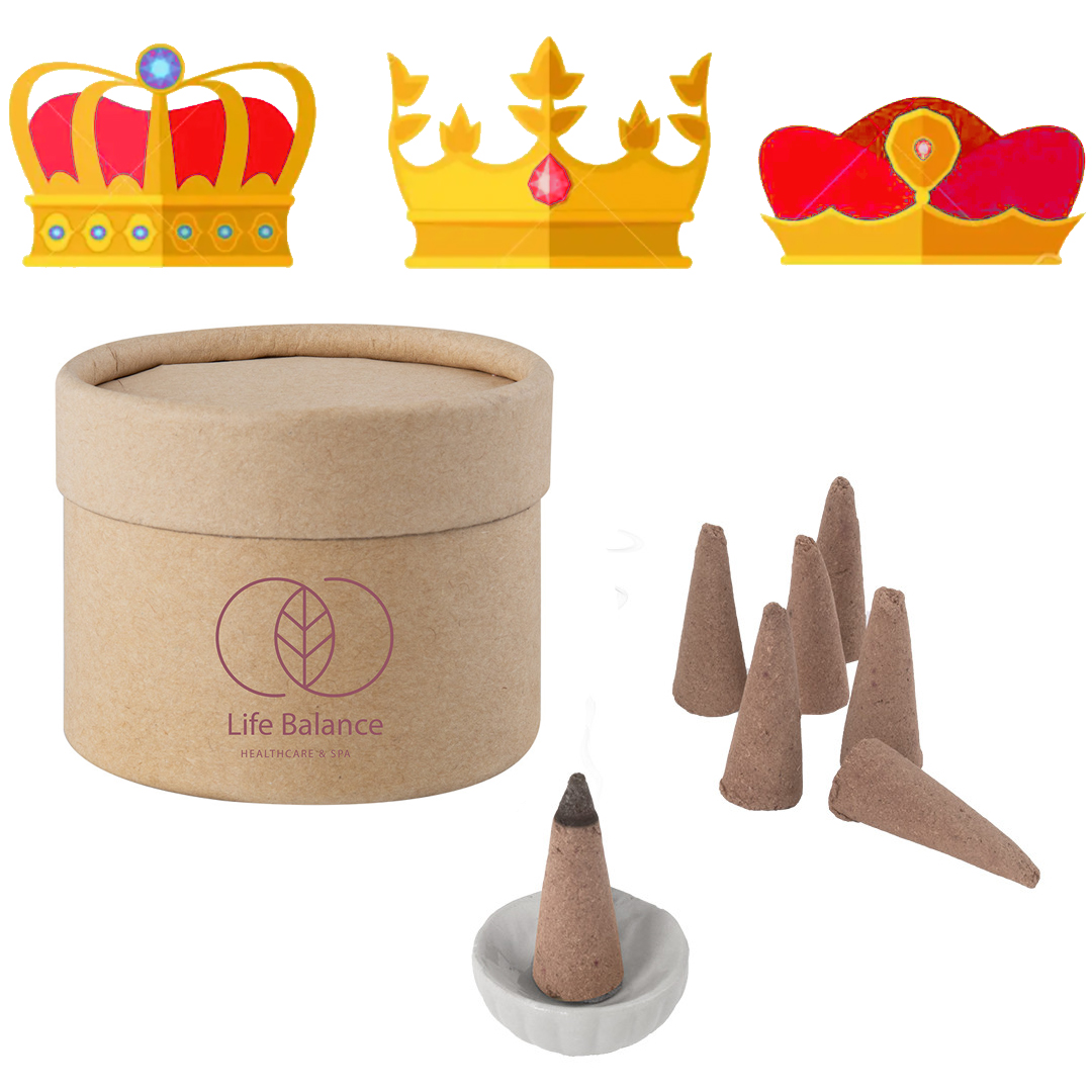 Para el incienso tenemos unas cajitas de cartón con 35 conos de incienso olor a sandalwood y soporte para apoyarlos. Personalizado con vuestro logo o diseño en la caja. Un artículo promocional para desconectar y relajarse.