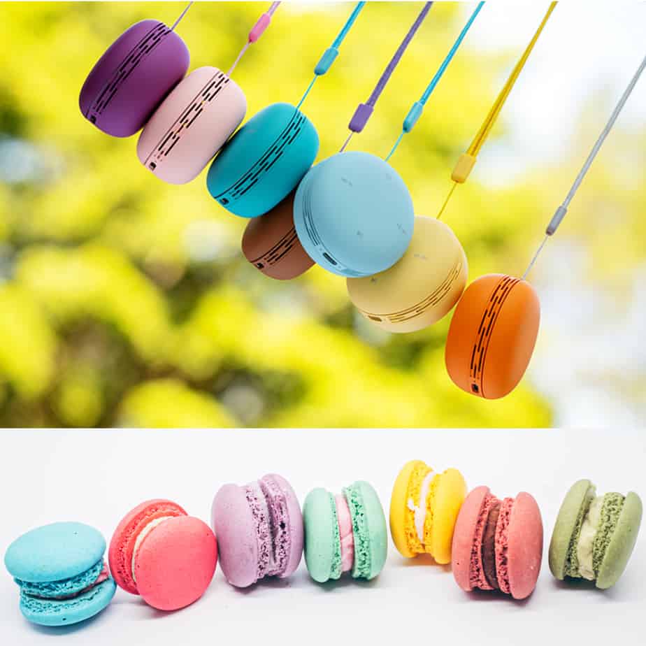 Un ejemplo las galletas macarón o macarrón, tradicionales de la gastronomía de Francia e Italia, hechas de clara de huevo, almendra molida, azúcar glas y azúcar. ¿Vosotros preferís coméroslo… o preferís su versión en altavoz Bluetooth? Con un tamaño de 6,5×3,7cm, este altavoz tiene una autonomía de 4 horas, y está disponible en 32 colores con tonos pastel, además de personalizarlo con vuestro logo. Y si emparejas dos altavoces, puedes disfrutar de un sonido en estéreo mientras te comes un macarón (de los dulces).